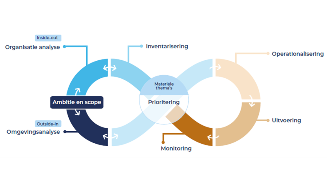 Vertrekpunt van de CSRD richtlijn is de zogeheten dubbele materialiteitsanalyse, op basis waarvan wordt bepaald wat als ‘materieel’ geldt voor uw organisatie. Deze mate van materialiteit bepaalt vervolgens op welke van de 1.000+ parameters uw organisatie dient te rapporteren over de strategie, het beleid, de impact, risico’s, kansen en de doelstellingen. Hieruit volgt een jaarlijkse rapportage over de voortgang op de doelstellingen.