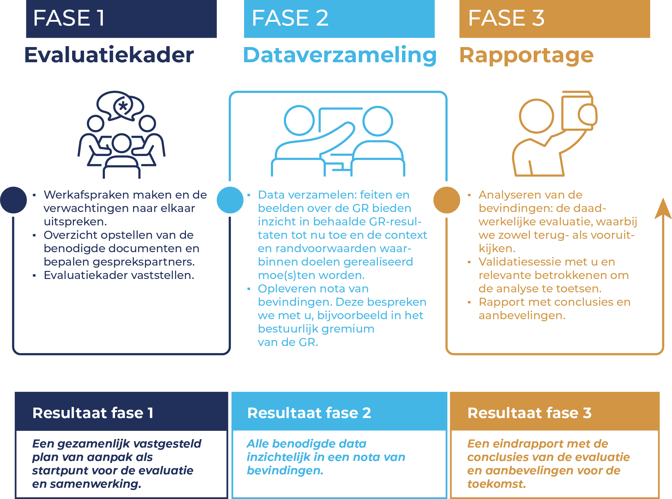 Tijdens de evaluatie doorlopen we samen met u drie fasen: